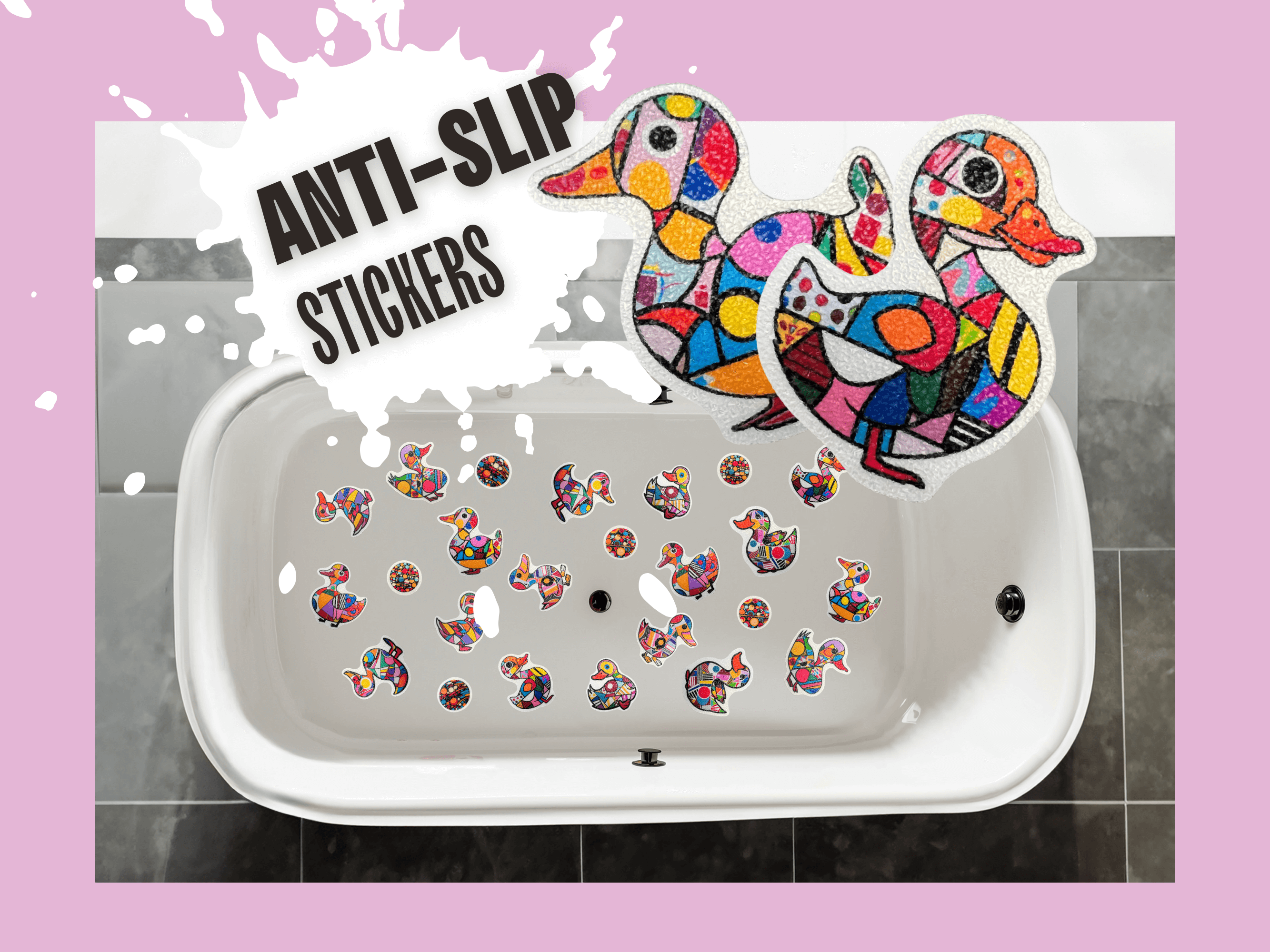 Discover our vibrant set of anti-slip decals, designed to cover a substantial area of your tub or shower! Each sticker varies in size for thorough and customizable coverage. Perfect for families, these decals transform your bathroom into a fun, safe space, ensuring traction and safety on slippery surfaces. Ideal for adding a splash of joy and essential safety to any bath time adventure. 🌈🛁