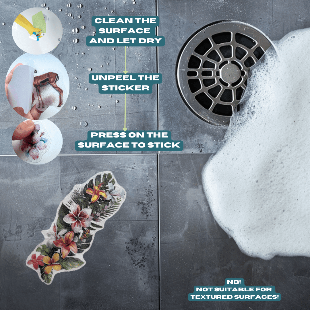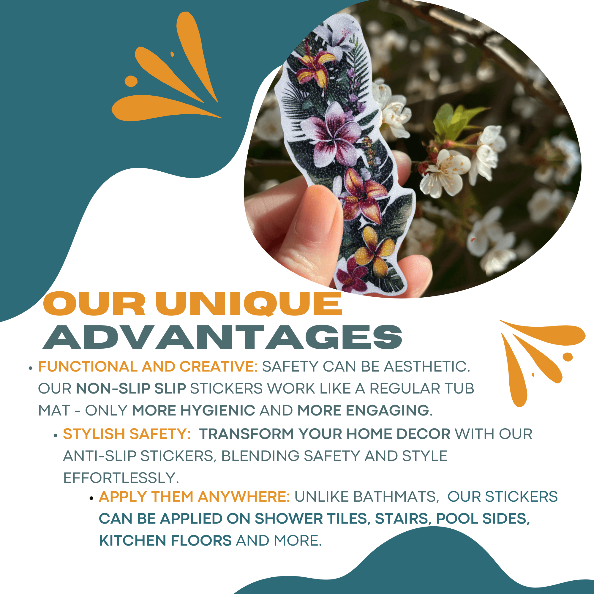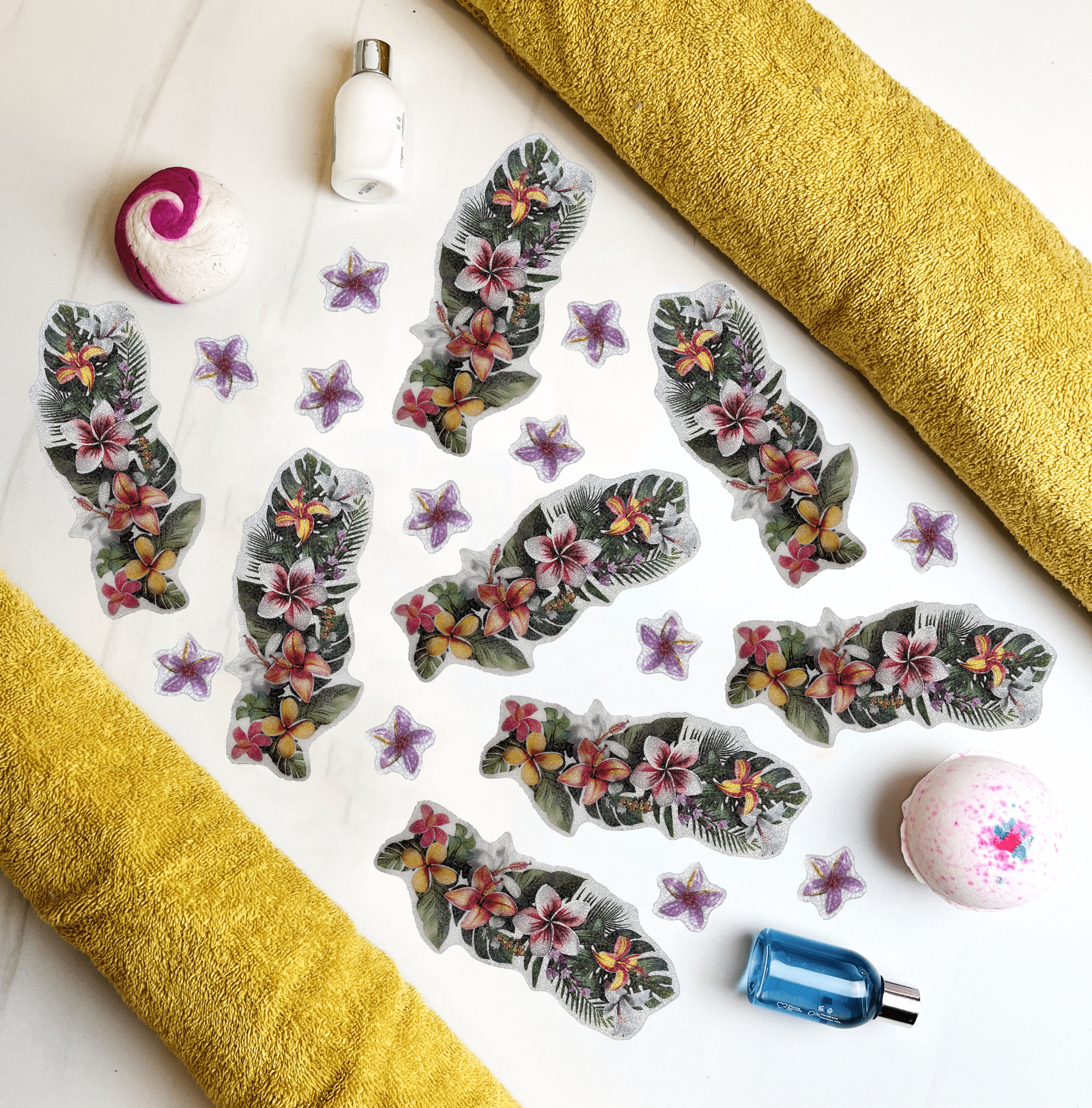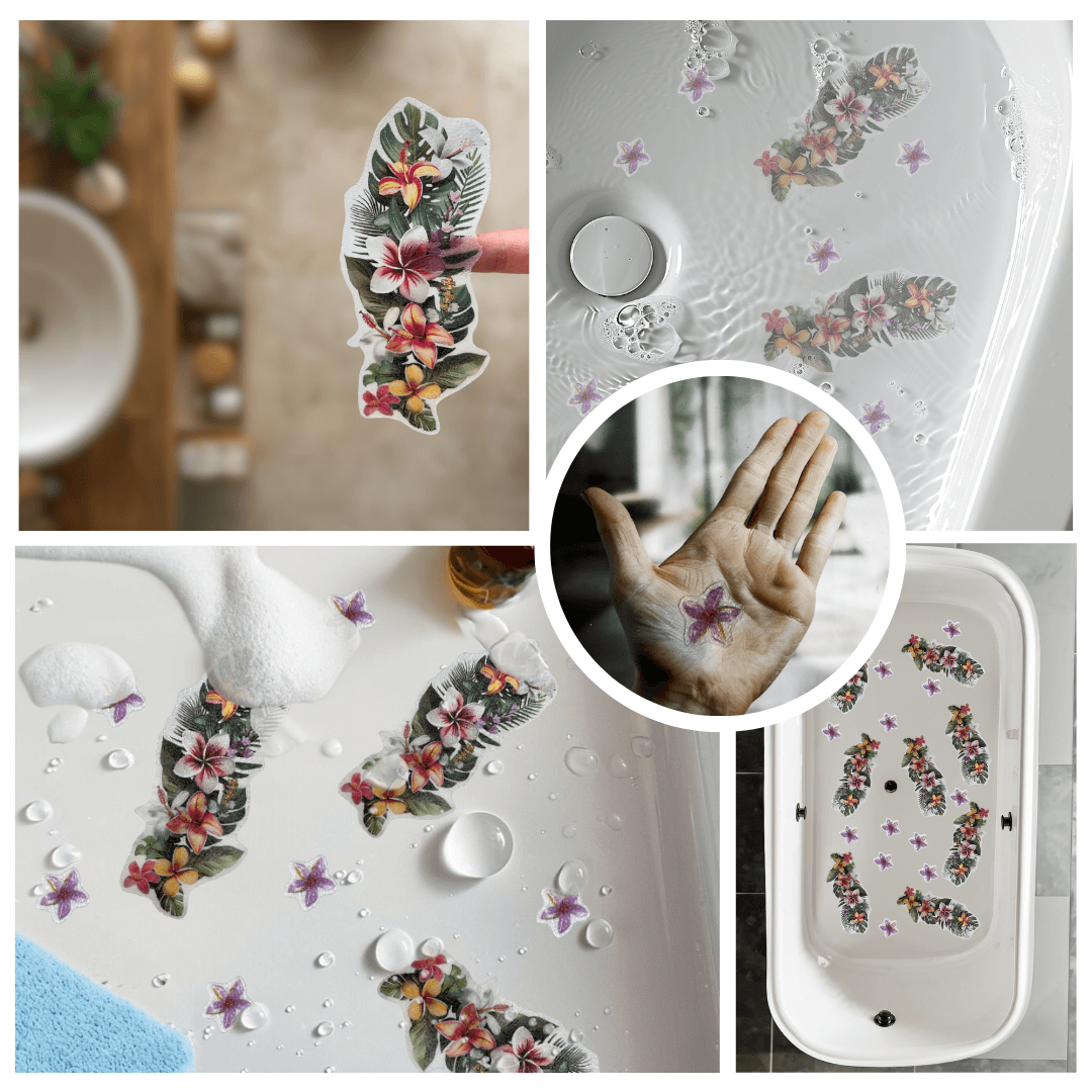 Experience the dual benefits of safety and style with our 3D flower stickers. Bring the tropical flowers into your bathtub or shower with our anti-slip stickers! 👣💦