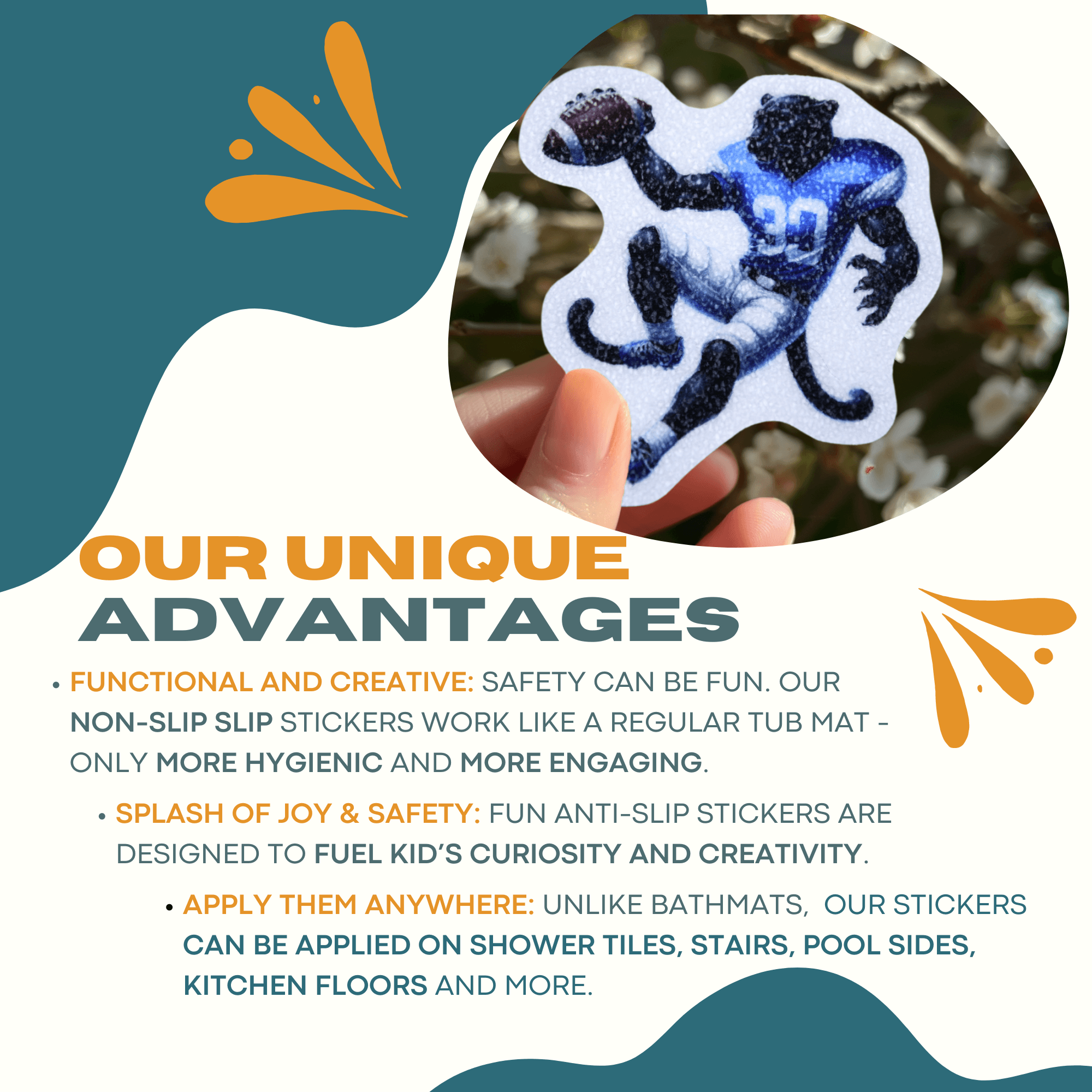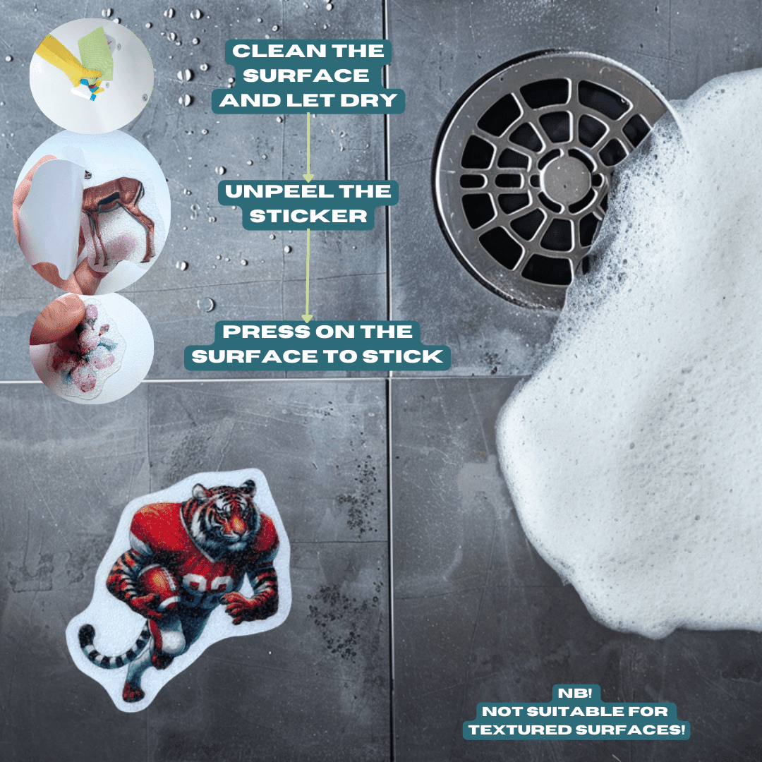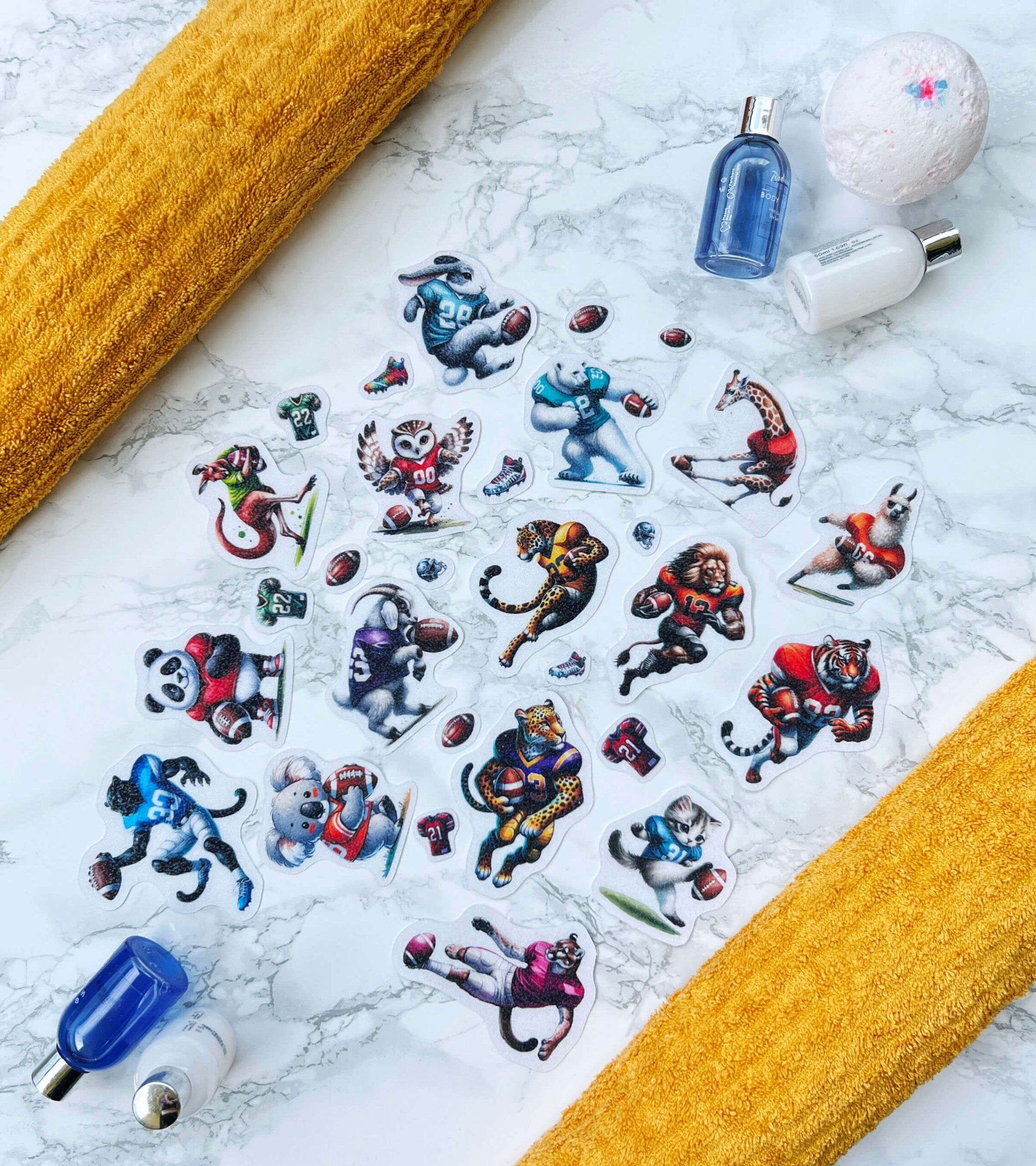 🏈 Sporty Animals Playing American Football Anti-Slip Waterproof Stickers for Bathtubs & Showers 🏈