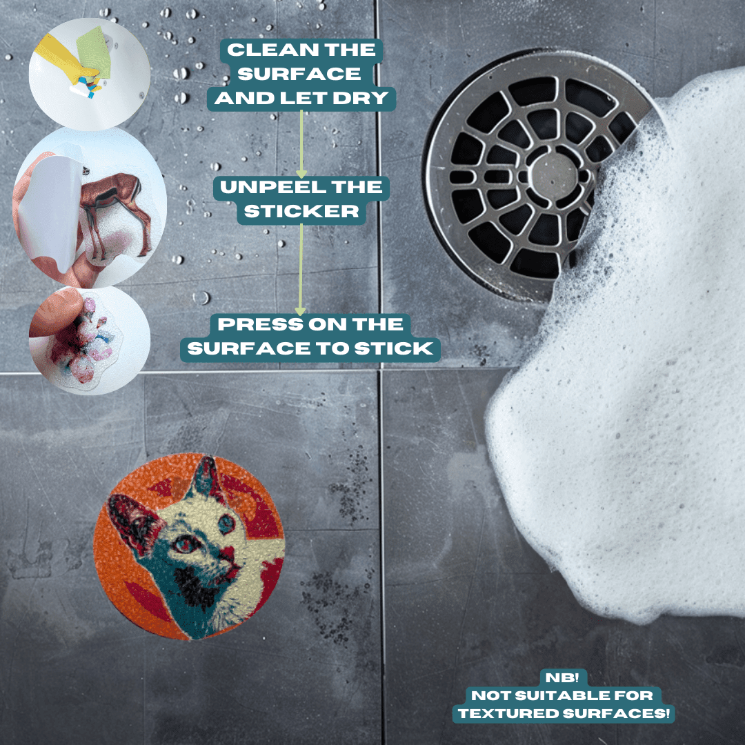 Experience the dual benefits of safety and style with our anti-slip pop art cat stickers and transform your bathroom into a secure and delightful space. 👣💦