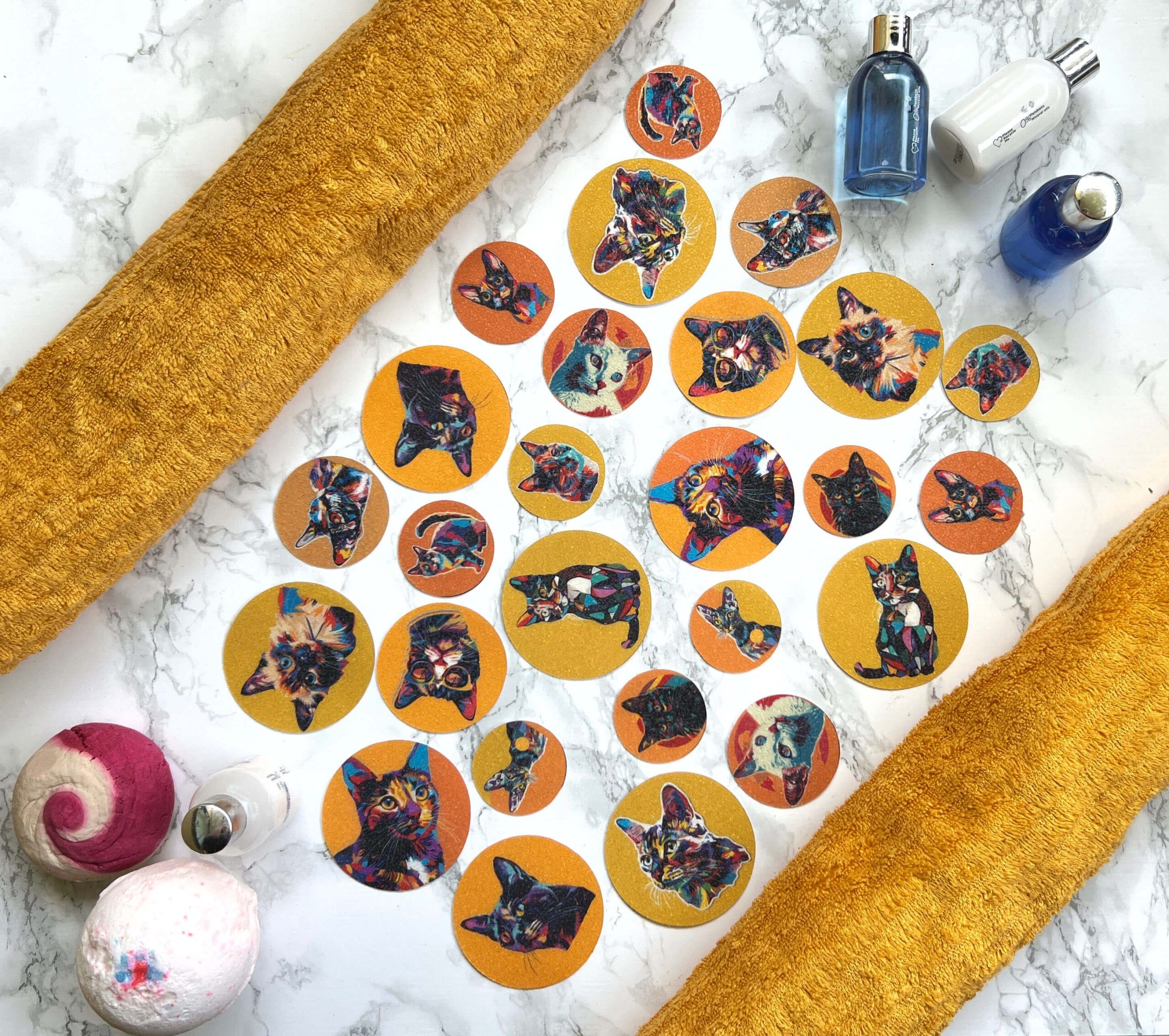 🐱 Cute Pop Art Cat Anti-Slip Stickers for Bathtubs, Showers And Other Slippery Areas. A perfect gift for a pet lover! 🐈⬛
