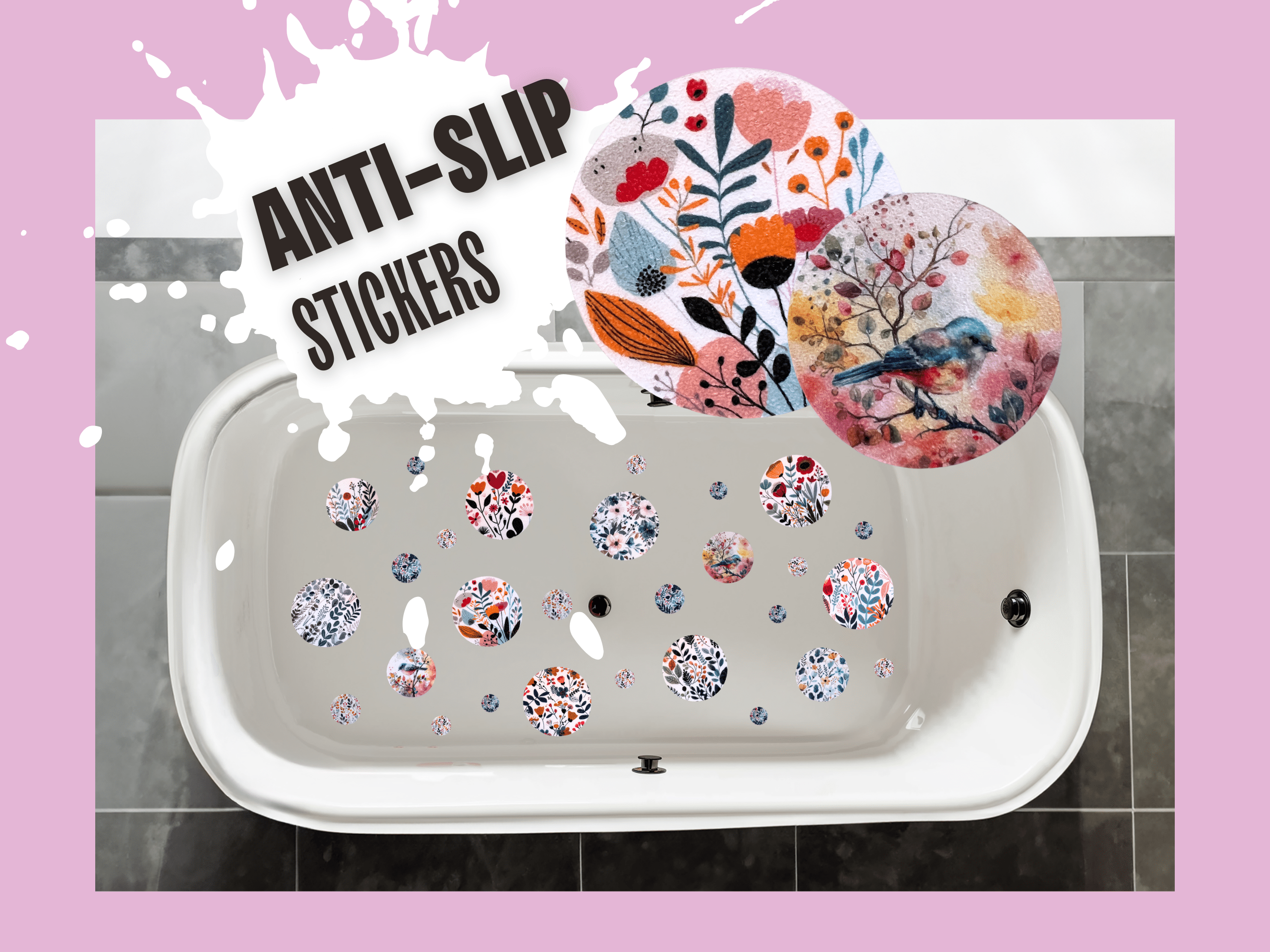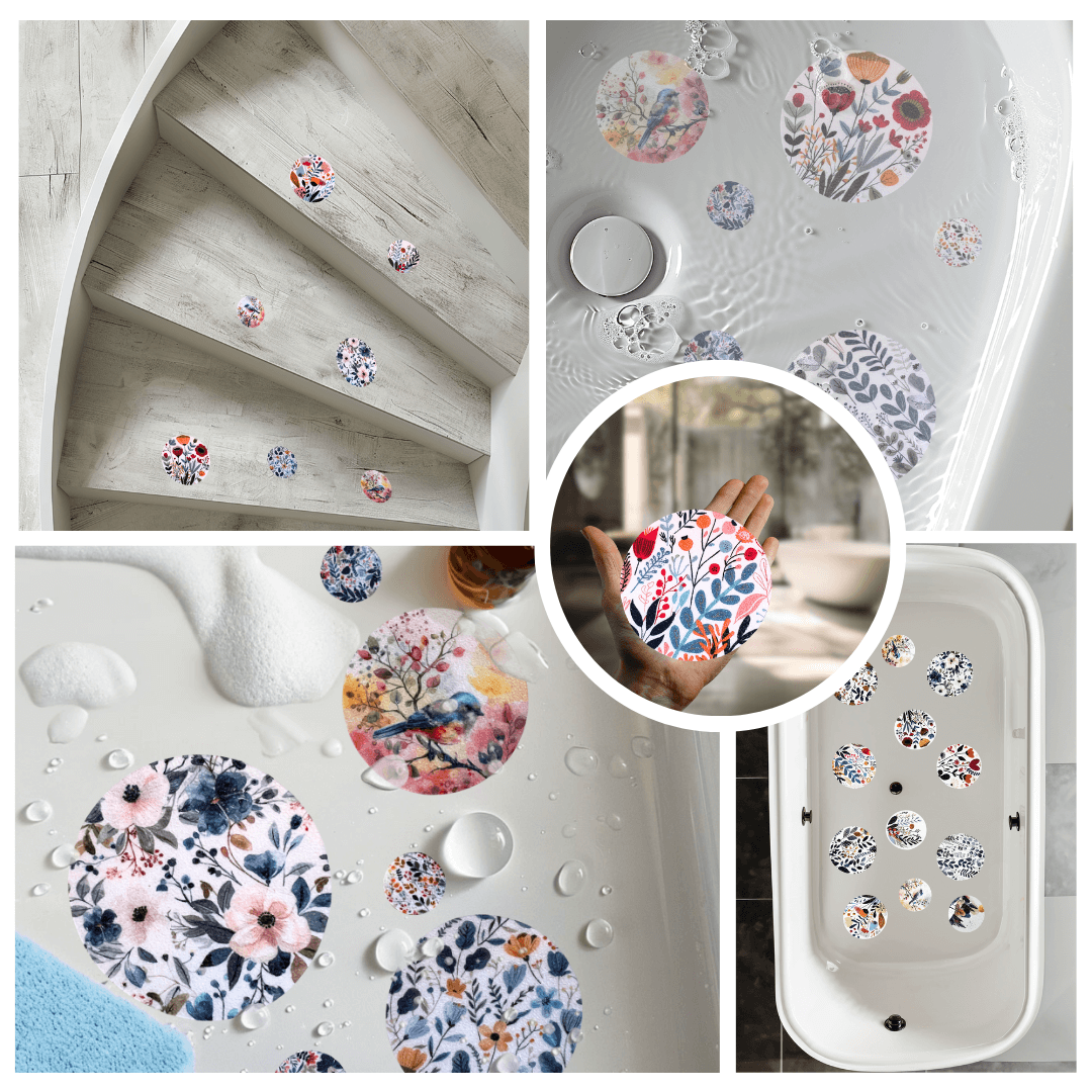 Experience the dual benefits of safety and style with our vibrant botanical design anti-slip tub decals and transform your bathroom into a secure and delightful space. 👣💦