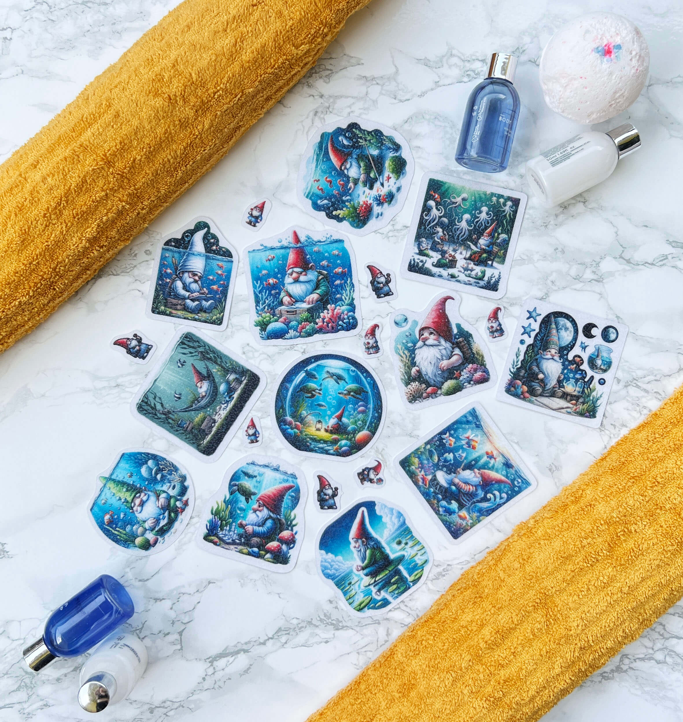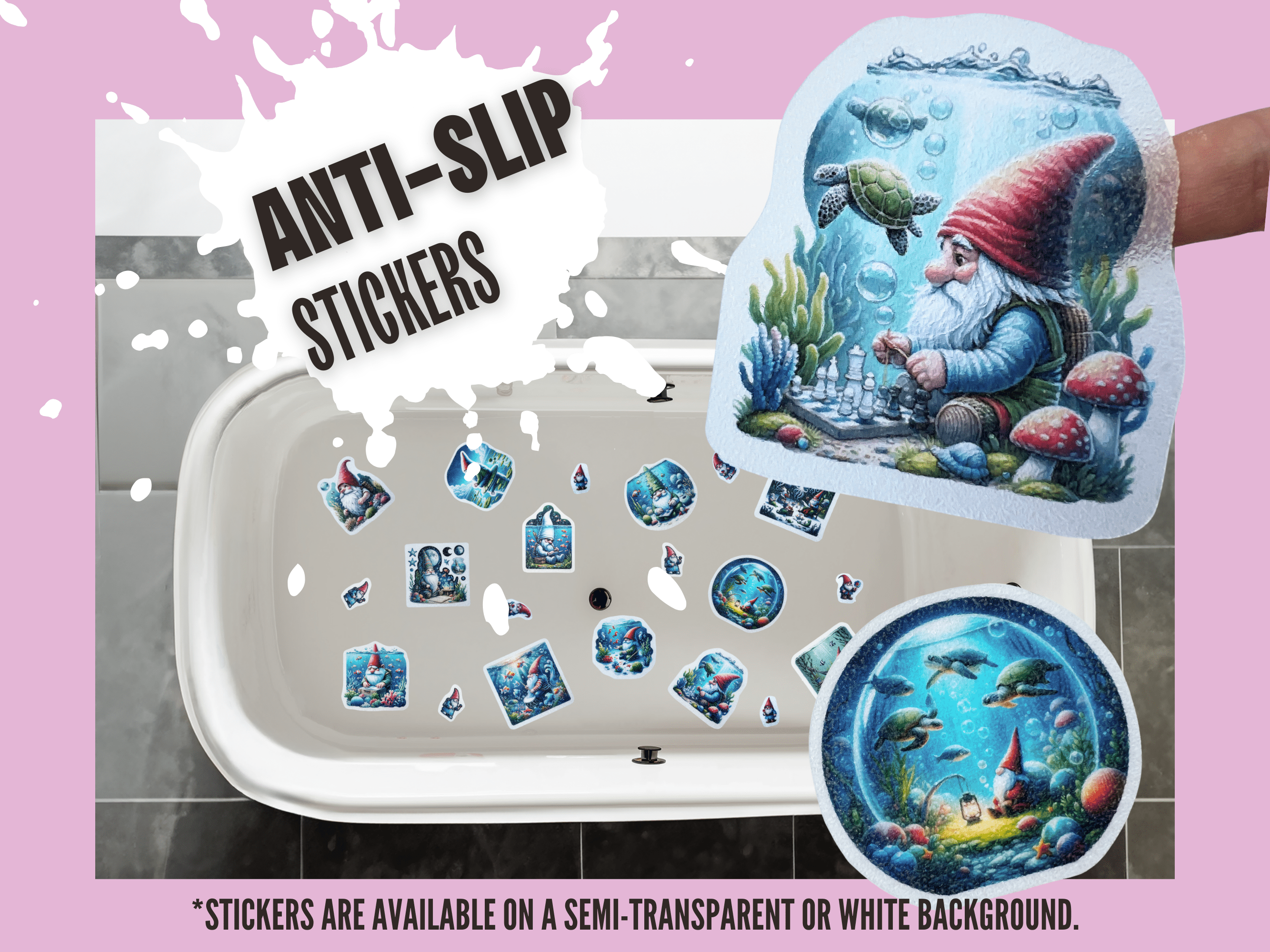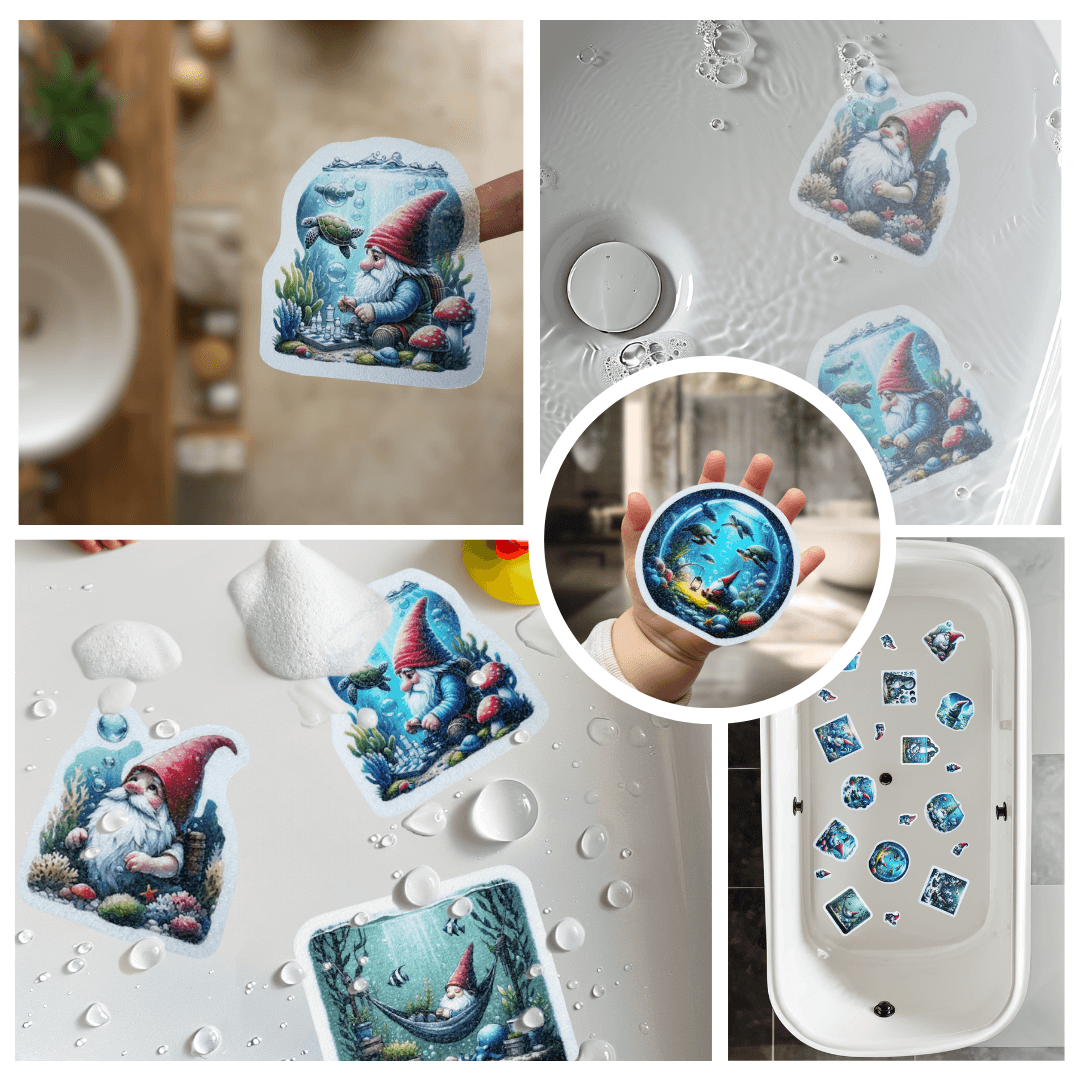 🌊 Cute Underwater Gnome Anti-Slip Waterproof Stickers for Bathtubs & Showers 🌊